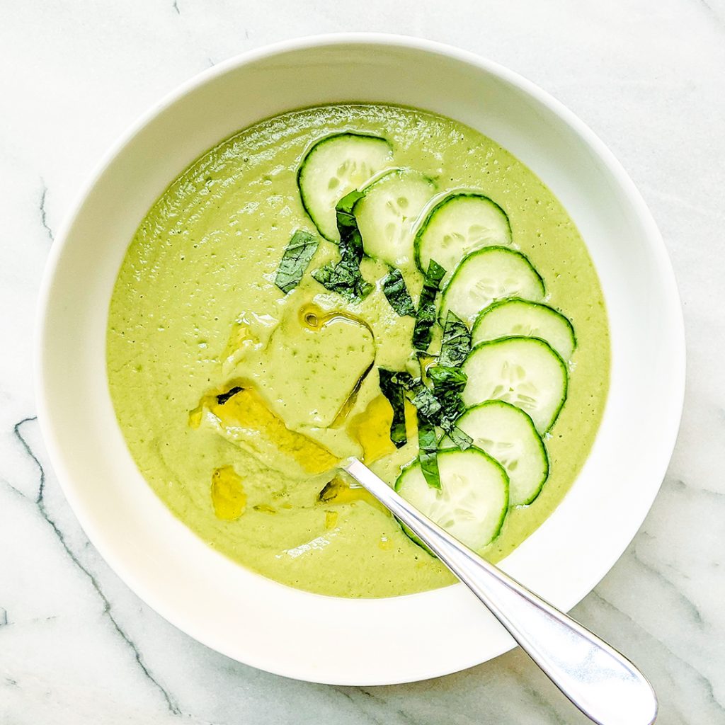 Chilled Cucumber, Basil & Avocado Soup (AIP & low-FODMAP)