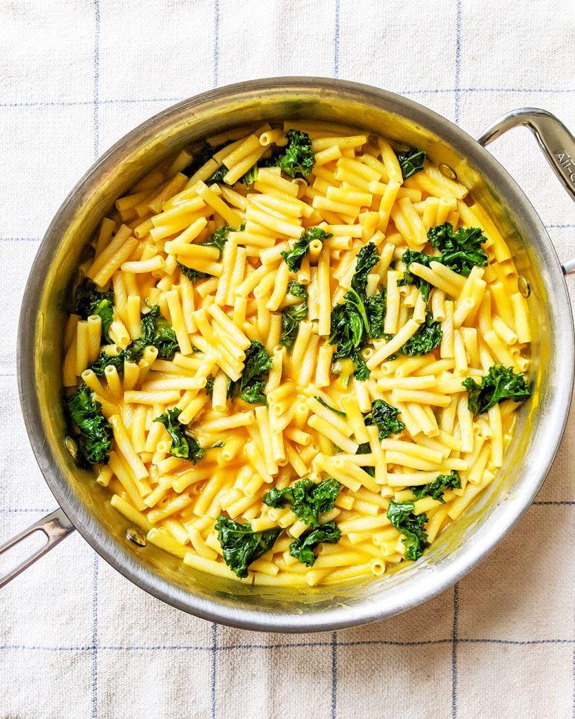 - Step 6 Once the pasta is complete, return to the large pot and add the kale / sauce. Stir until sauce, kale, and pasta are fully combined over low heat. Serve warm and enjoy!