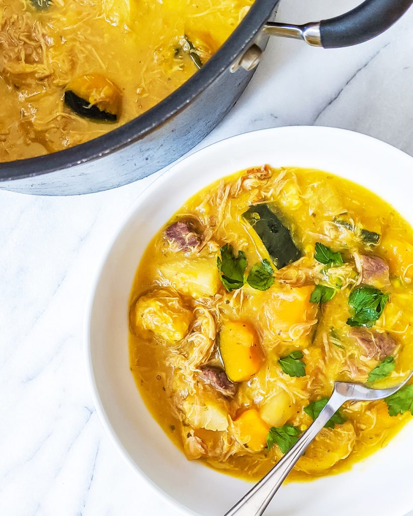 After my husband made a version of Sancocho the other day, I was inspired to make an AIP recipe that is free of corn and nightshades. This allergy-friendly stew is full of flavor with a bit of sweetness from the yellow plantain and squash balanced by the beef, turkey or chicken, and yuca. As a bonus, the starchy vegetables naturally thicken the broth, leaving you with a rich and nourishing stew.