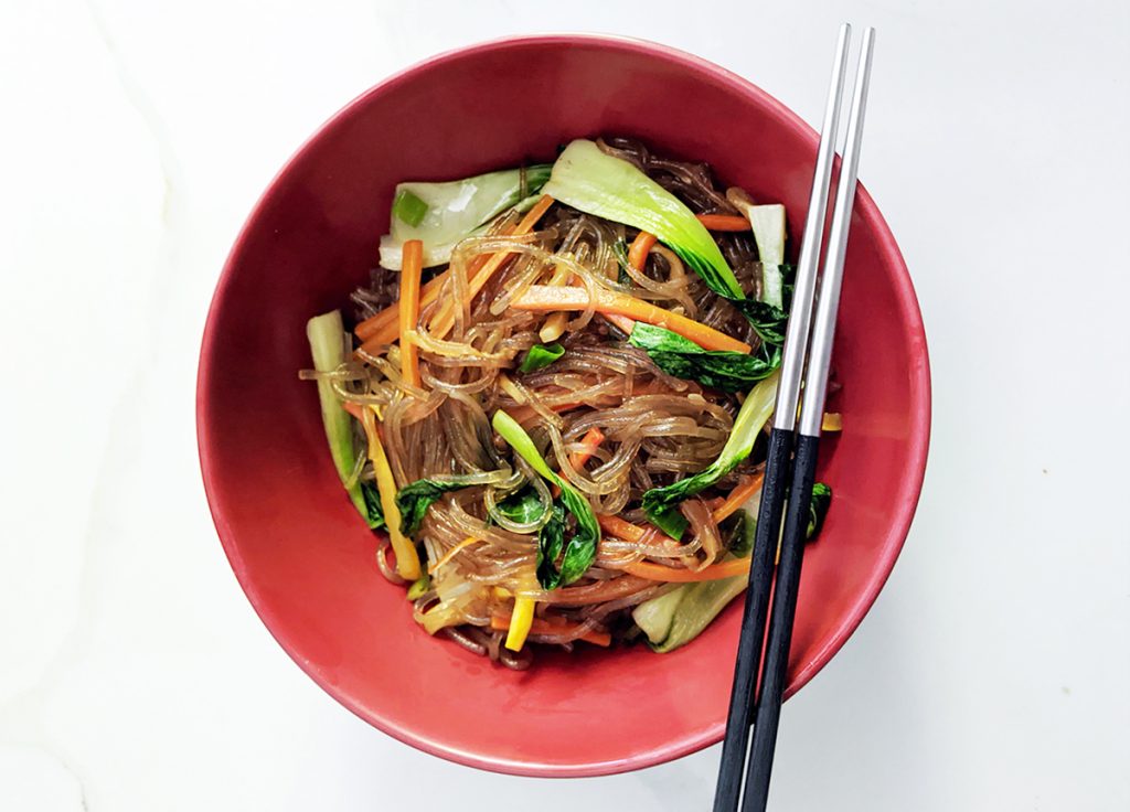 This gluten-free and vegan Japchae recipe is packed full of a variety of vegetables, providing a filling and nutrient-dense meal. I have always been a huge fan of Japchae, a traditional Korean glass noodle stir-fry and since the sweet potato noodles are naturally gluten-free, it makes Japchae very easy to adapt into a Top 8 allergen-free dish.